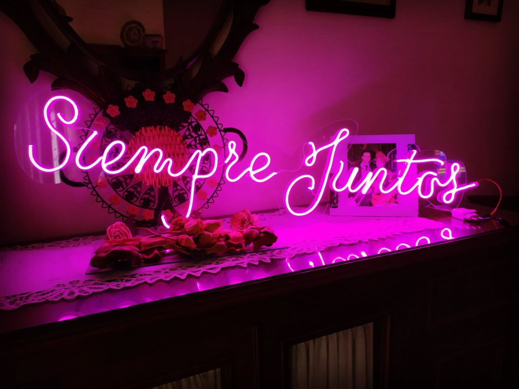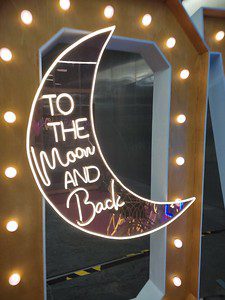 Alquiler de neones para bodas y neones personalizados para eventos. Las letras luminosas para bodas son una de las tendencias más originales para decorar todo tipo de espacios. Crean una atmósfera muy original y moderna. Se pueden utilizar en la ceremonia, en el banquete, en la zona baile o acompañando el photocall. Además de las frases de neón que tenemos en alquiler, también te podemos crear tu neón led personalizado.